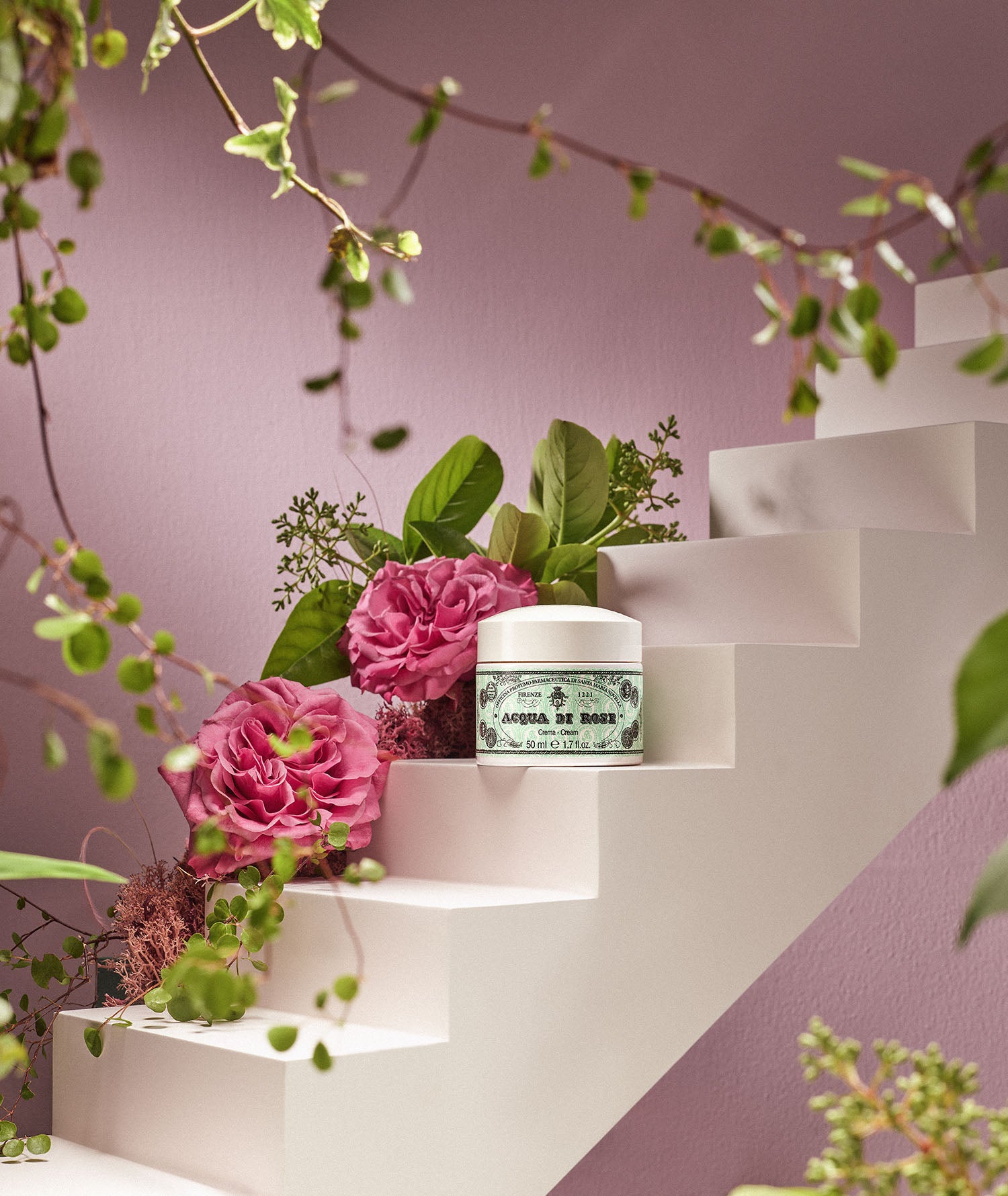 Descubre la Crema Acqua di Rose de Officina Profumo-Farmaceutica di Santa Maria Novella. Una crema hidratante que ofrece a todo tipo de piel una sensación inmediata de frescura y elasticidad. Una luz encantadora que brilla en tu rostro.