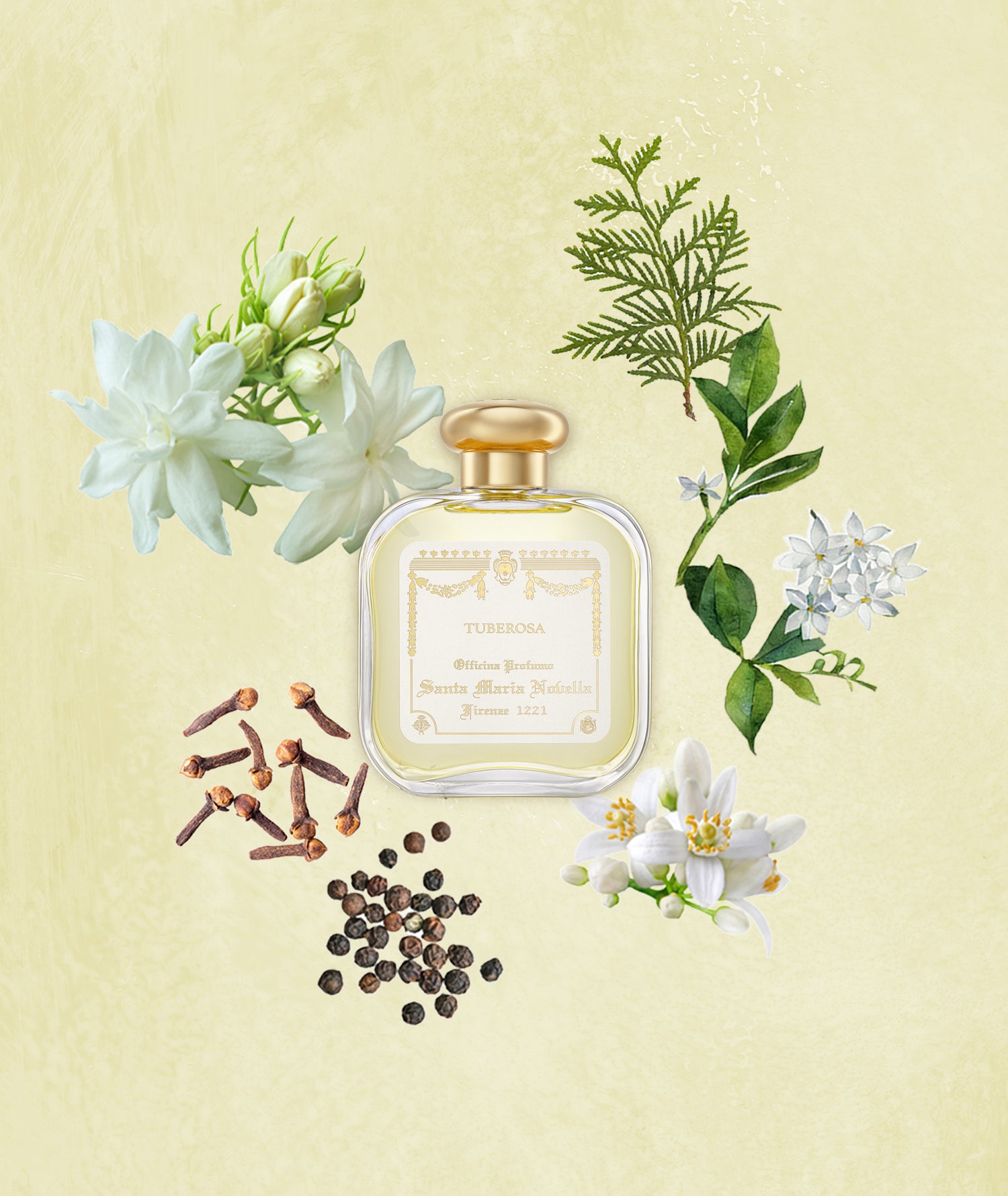 I fiori bianchi della tuberosa, che rilasciano il loro profumo inebriante al tramonto, sono simbolo di sensualità. La combinazione esotica di ylang ylang, gelsomino e fiori di arancio amaro è il preludio floreale a cui le note di pepe nero e chiodi di garofano aggiungono una dimensione speziata e intrigante che termina con note profonde e durature date, tra gli altri, dal legno di cedro.