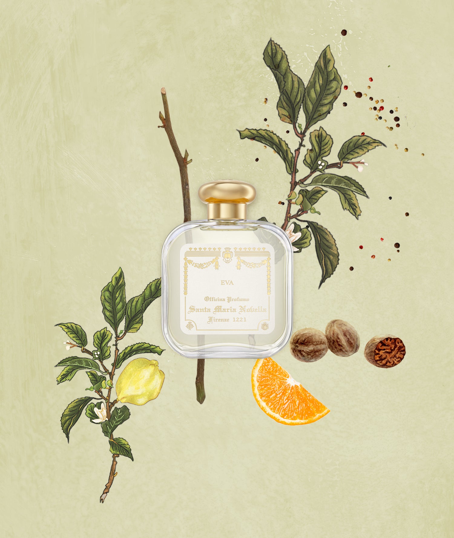 Eva Eau de Cologne è così un perfetto equilibrio tra freschezza e intensità, offrendo una scelta distintiva per chi cerca un profumo che unisce eleganza classica e modernità. Affascina con la freschezza vivace degli agrumi di Sicilia ed evolve in un cuore speziato di pepe e noce moscata che aggiunge complessità e calore. Il fondo di vetiver di Giava e foglie di tabacco conferisce una base legnosa e avvolgente, completando la composizione con una profondità sofisticata.