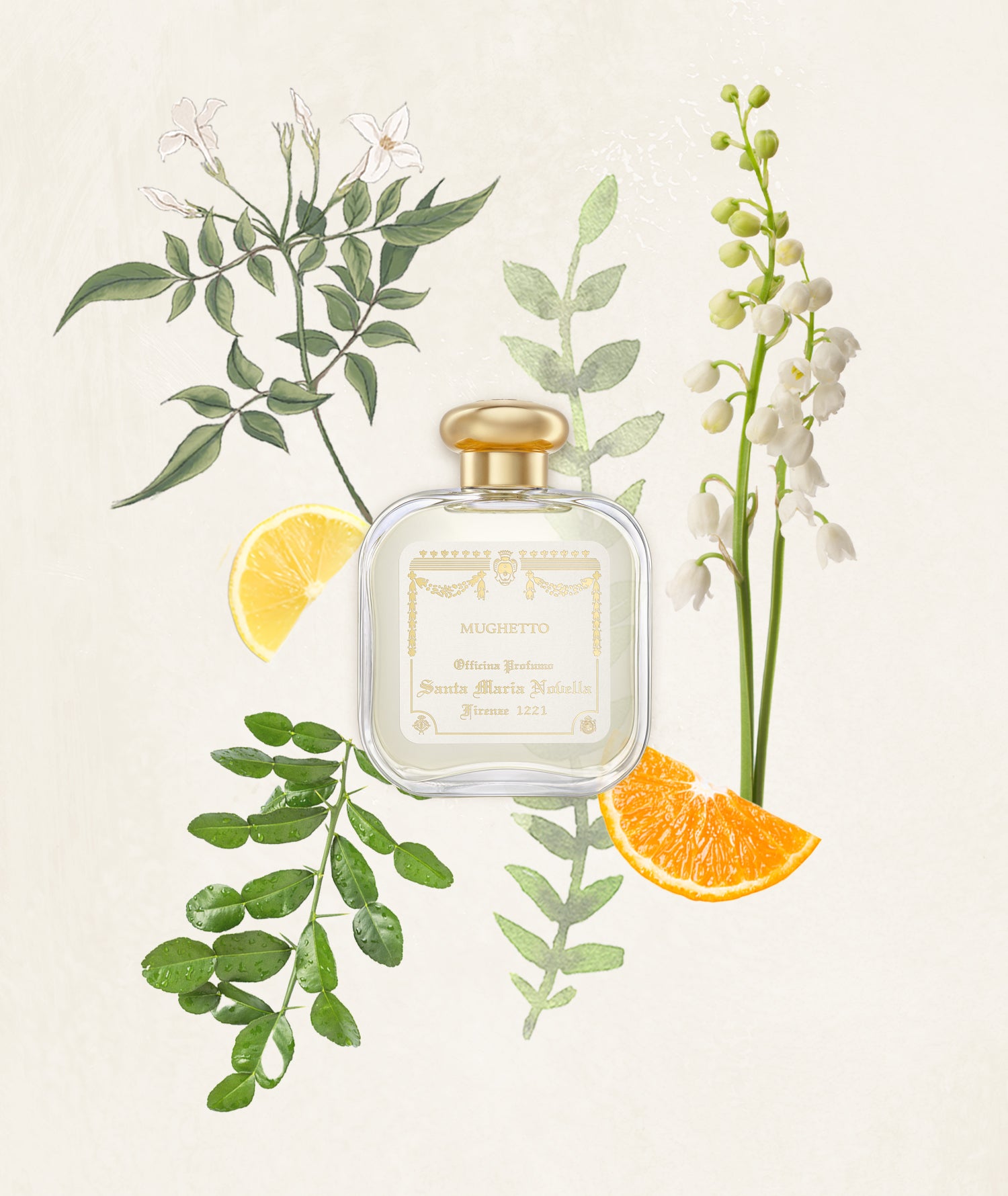 Mughetto enchants with its delicate sweetness and fresh green notes. The lily of the valley’s flowers grow wild in the woods and are known for their bustling scent, which, according to tradition, has the power to sharpen memory. This Eau de Cologne is a refined interpretation of the purity and freshness of the flower, evoking the serenity of the forest.