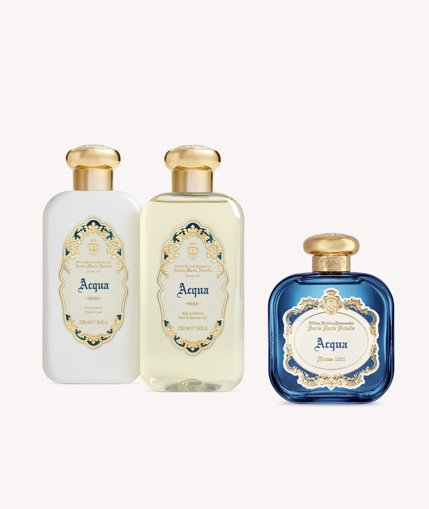 Acqua is now expressed in a Fluid Body Cream that carries the same composition as the Eau de Parfum. Enriched with vegetable oils and butters, it nourishes the skin while maintaining the clarity of the fragrance.
